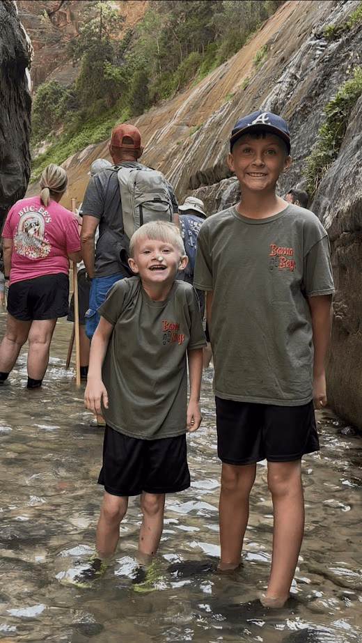 We pedaled our bikes to the far end of the park, reaching a spot known as the Narrows, which was the hike we had been eagerly anticipating. Our day was primarily spent navigating the stunning trails of the Narrows, though it was interrupted by yet another nosebleed from Lawson. It seems our family has a knack for these nosebleeds whenever we explore the western regions of the United States.